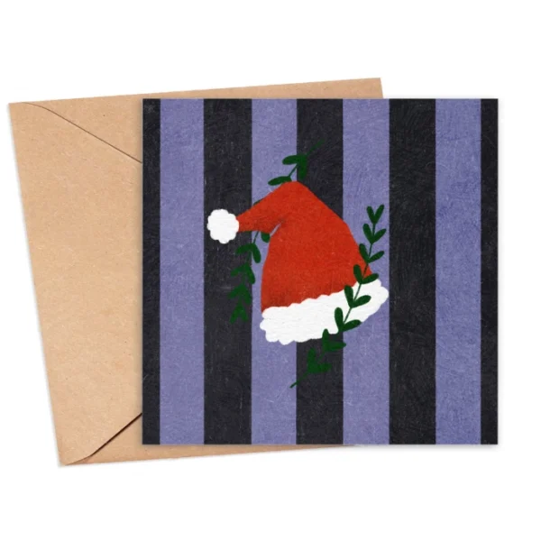 Kartka okolicznościowa – Czapka Mikołaja paski