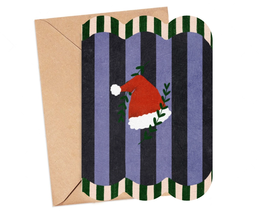 Kartka okolicznościowa – Czapka Mikołaja paski